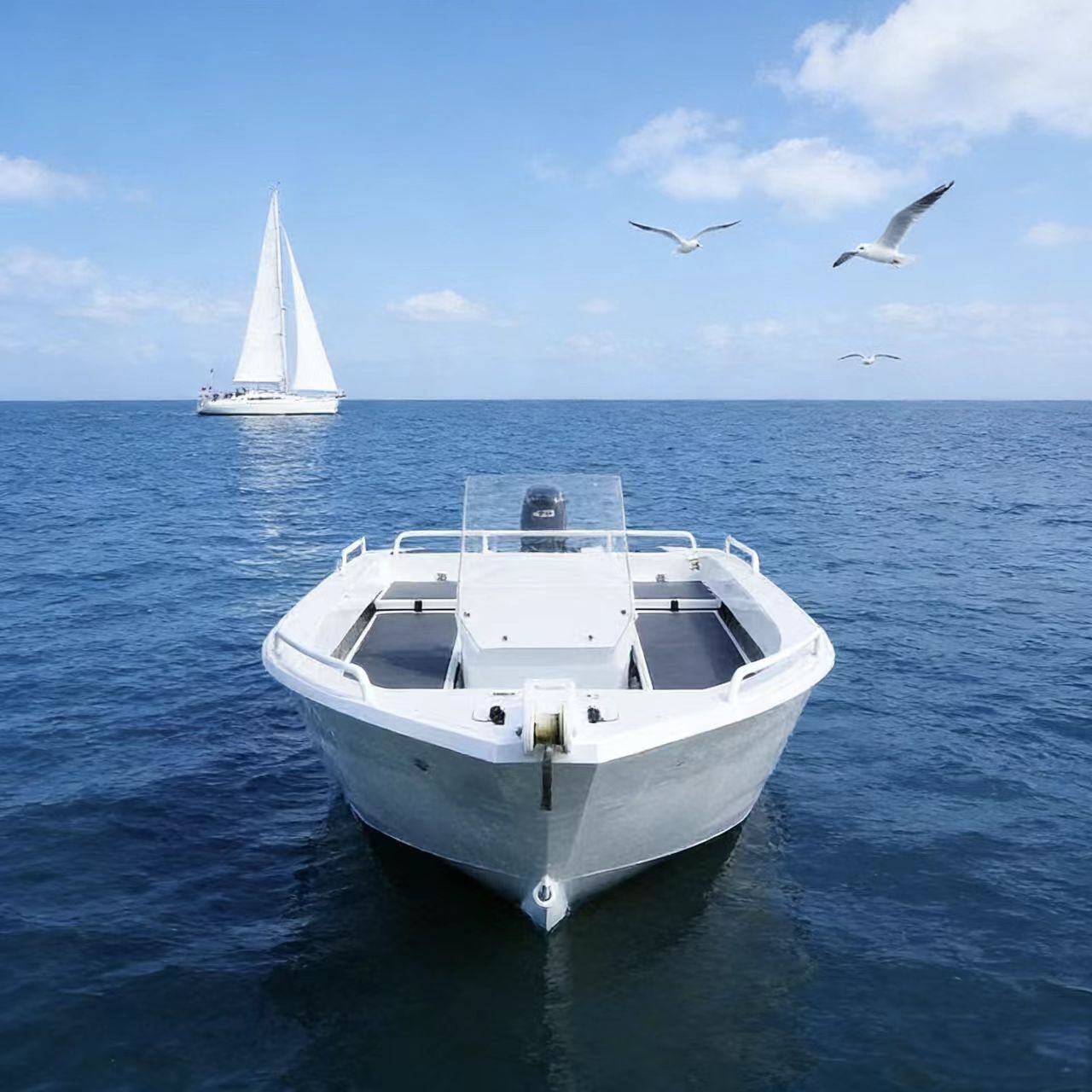 This 6-person aluminum alloy speedboat is strong, durable, and lightweight. Made of high-quality aluminum alloy, it offers great stability and long service life. Easy to operate and maintain, perfect for family trips, fishing, sightseeing, and outdoor water activities. Safe, fast, and comfortable for all your leisure adventures.