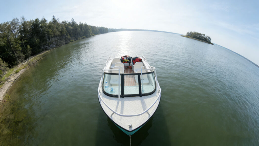 Ride smoothly to find a quiet swimming place. The strong aluminum hull keeps the boat steady. It handles small waves very easily. Kids can fish from the wide deck. They can play and laugh in the sun. Every trip makes happy memories together. Share meals and splash in the water.