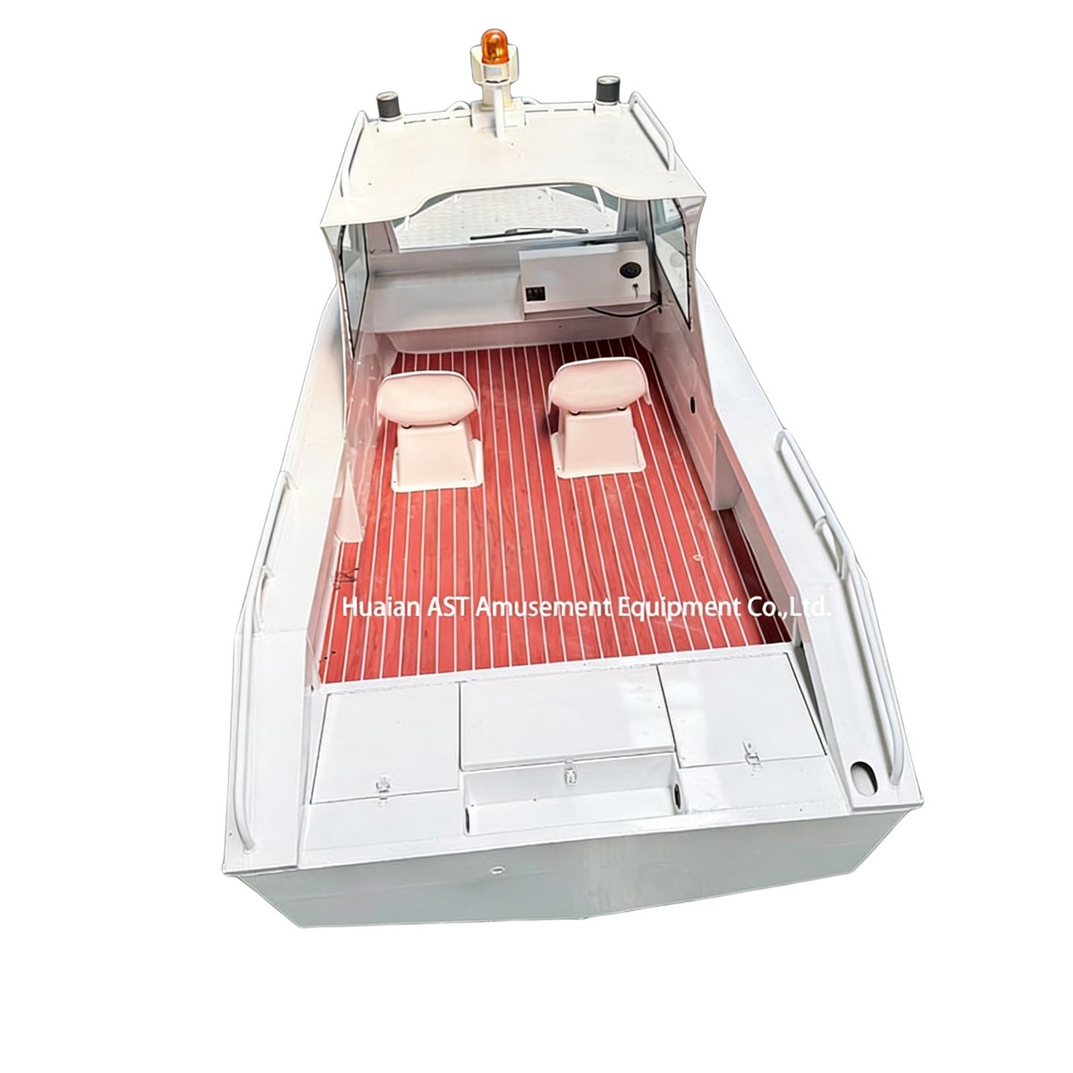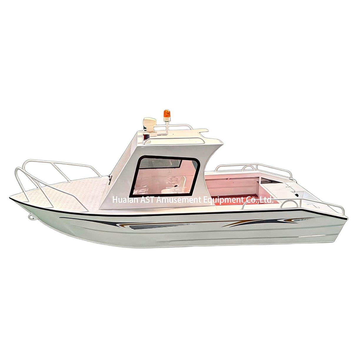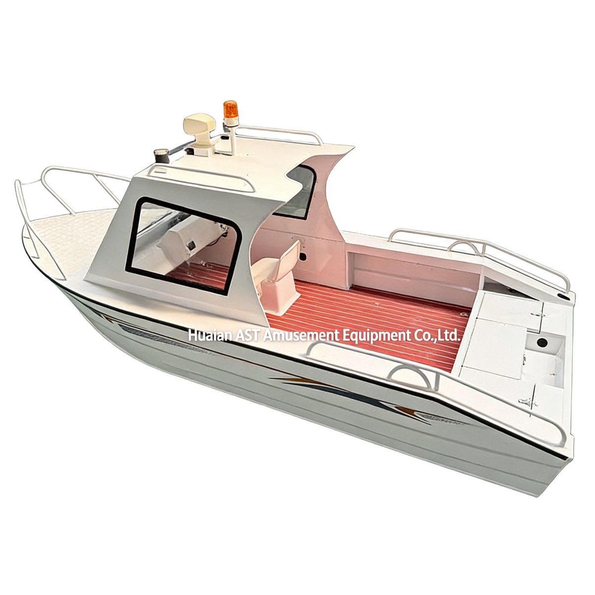A: Yes. Non-slip deck, stainless railings, and a bilge pump help.